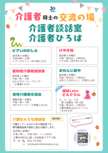 介護者同士が介護の悩みを話したり、情報交換をする介護者の「居場所」です。
