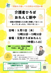 介護者ひろばおれんじ新中「家族が認知症になる前に準備しておくこと、なってしまったら、やるべきこと」を開催します!