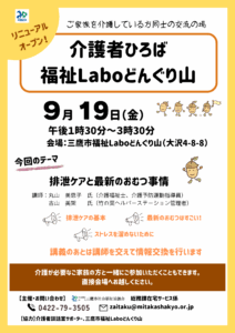9/19(金)介護者ひろば 福祉Laboどんぐり山「排泄ケアと最新のおむつ事情」開催!