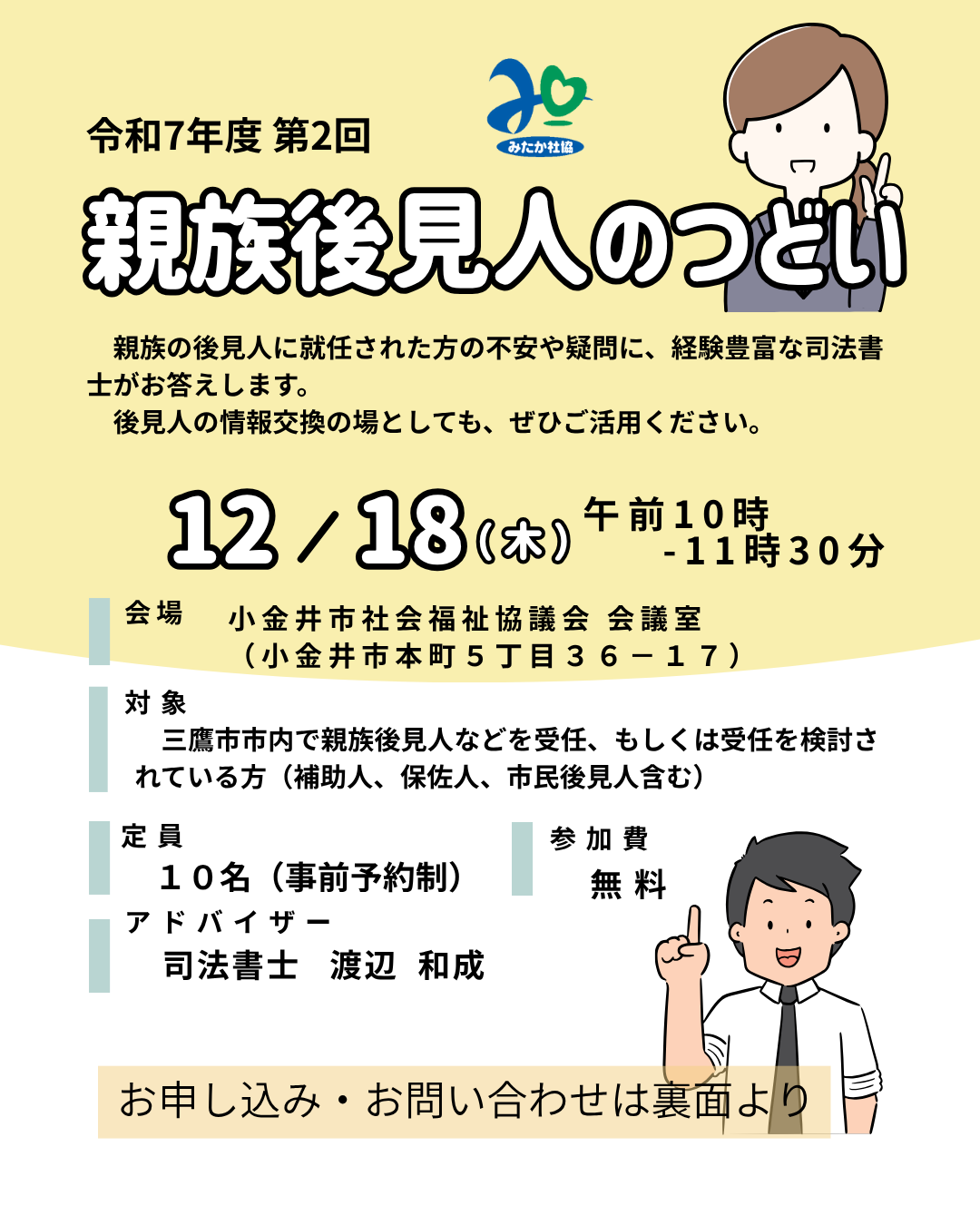令和7年度 第2回「親族後見人のつどい」を開催します