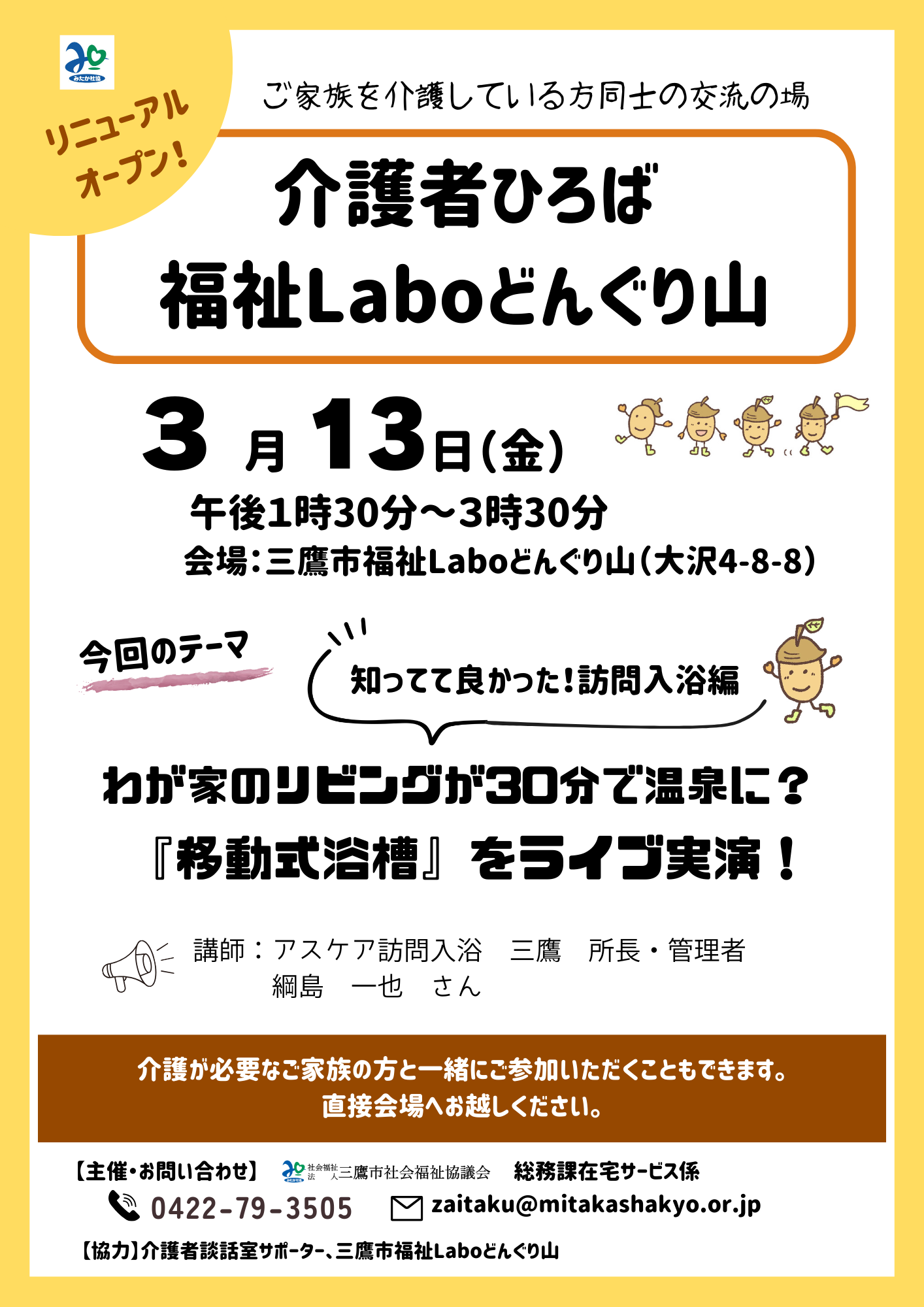 3/13(金) 知ってて良かった!訪問入浴編 わが家のリビングが30分で温泉に?「移動式浴槽」をライブ実演!