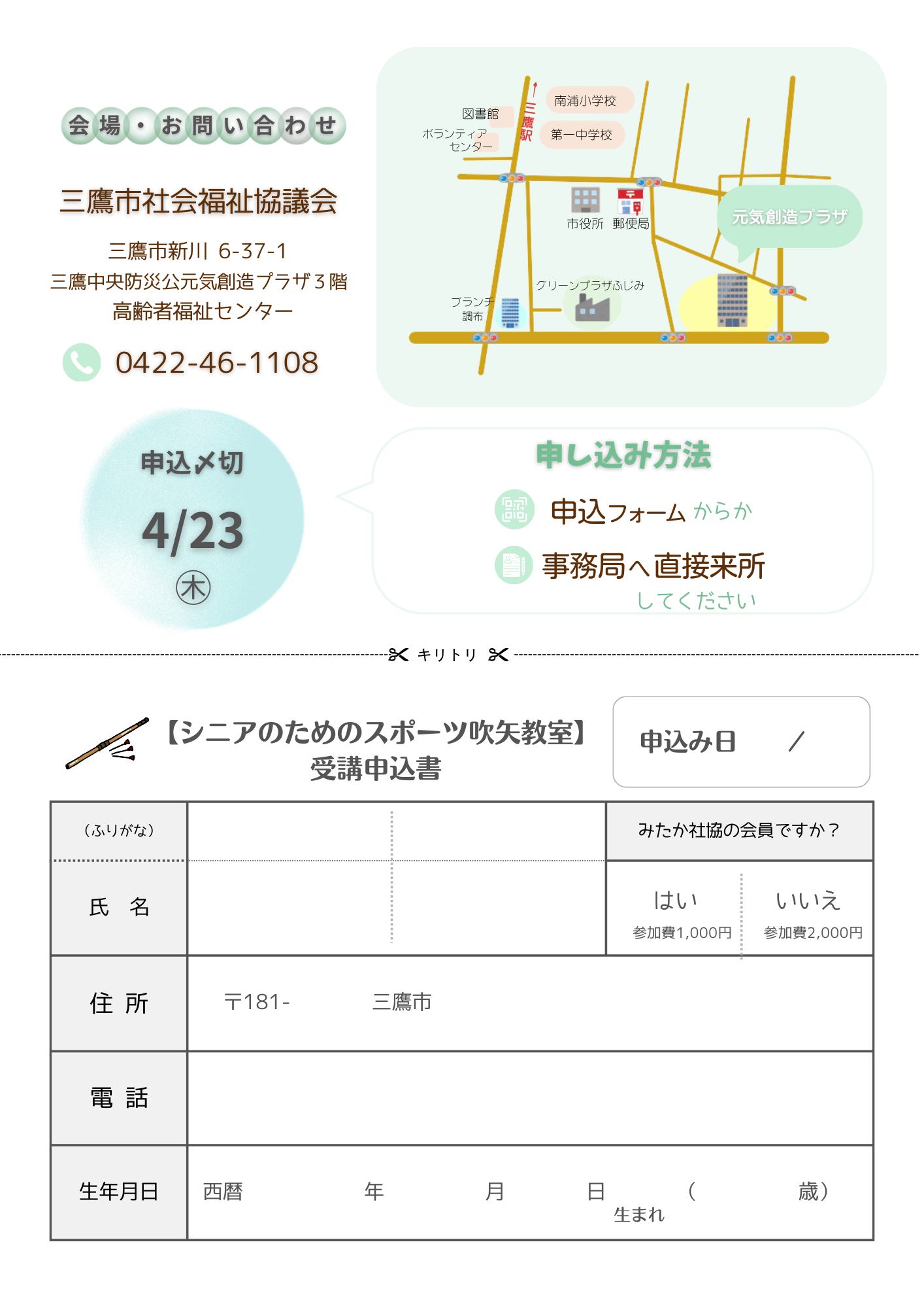 ■お問合せ:三鷹市社会福祉協議会 総務課 事業係 TEL0422-46-1108
