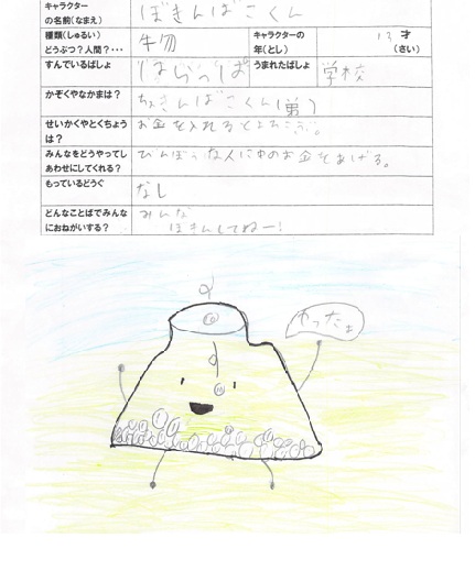今年は高山小学童保育所A・Bの子どもたちに募金キャラクターを描いてもらいました。 ぜひご覧ください♪ ※見たいキャラクターの画像をクリックすると、大きく表示されます